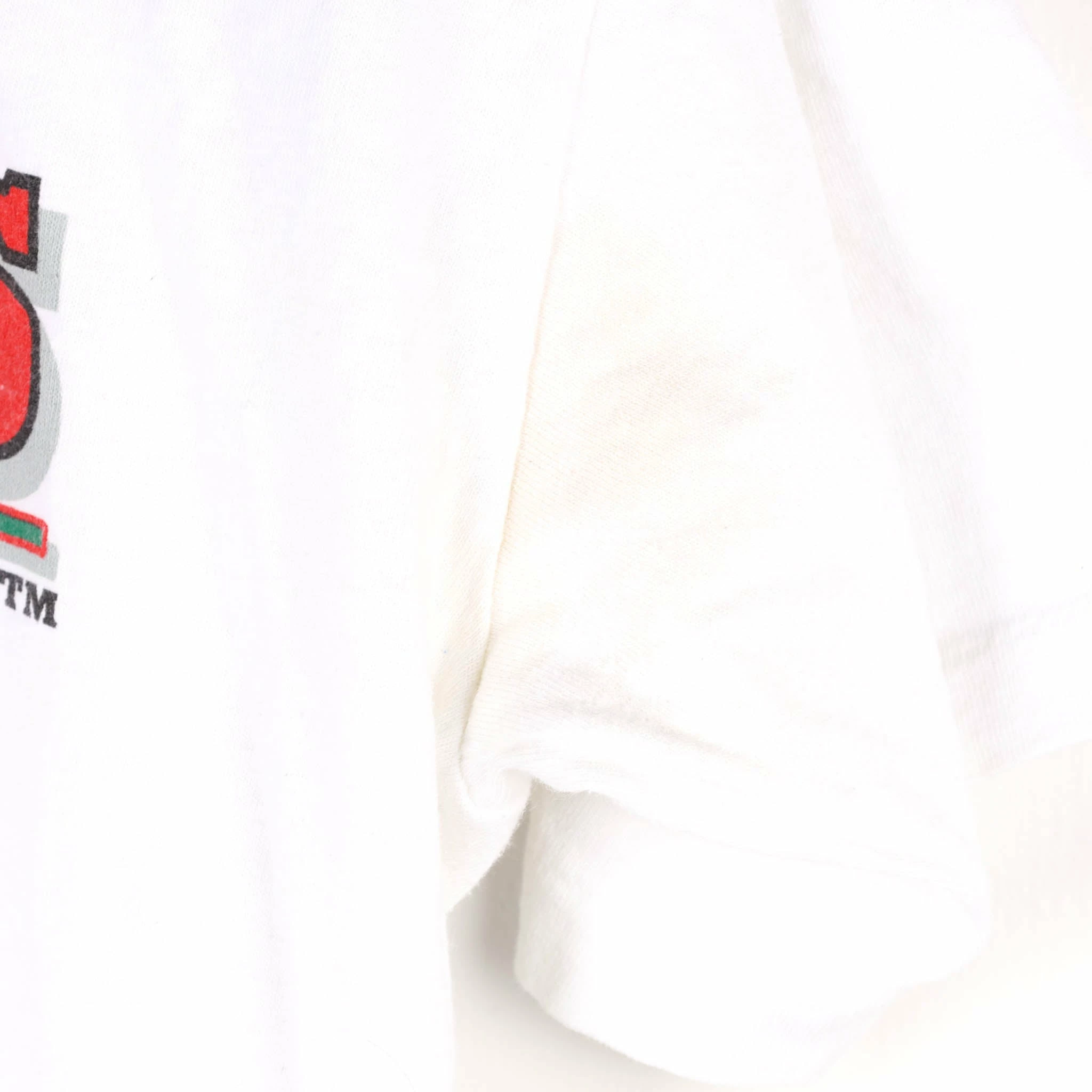 Flaws: yellowing near armpits .