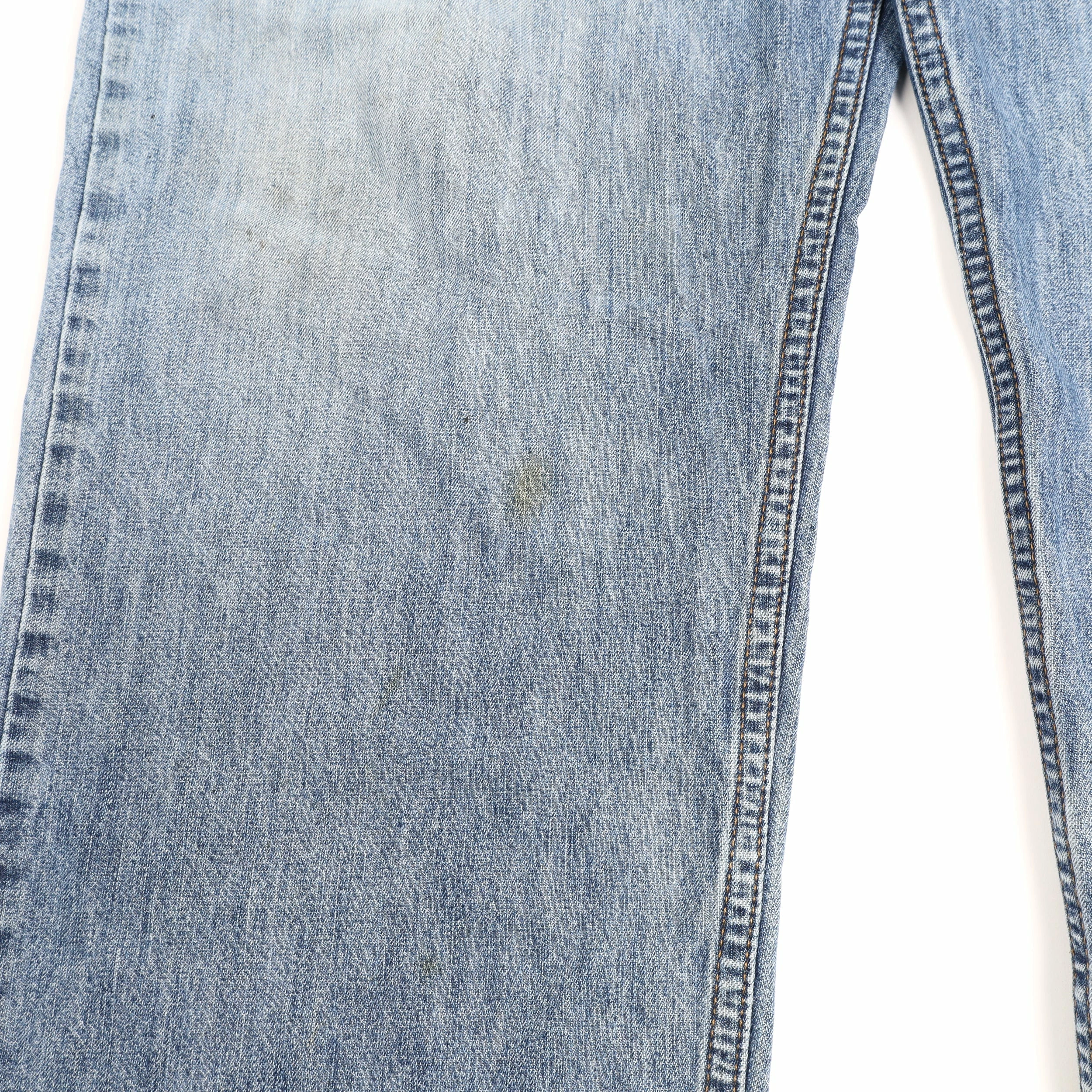 Flaws: frayed at the bottom of both legs, marks on the front of both legs (see additional photos).